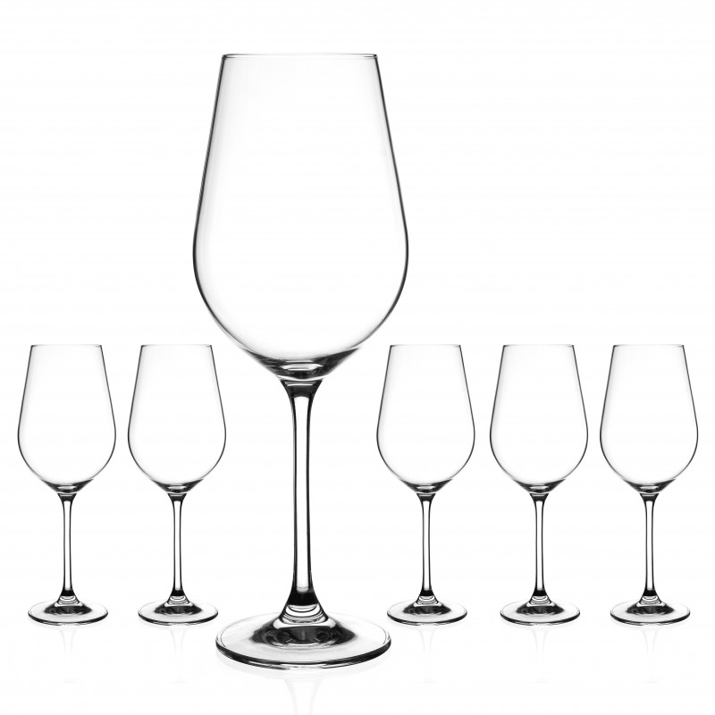 Šesť veľkých pohárov na víno s obsahom 470ml. Sú vyrobené z kvalitného krištáľového skla a určené pre každodenné použitie. Vhodné do umývačky riadu.