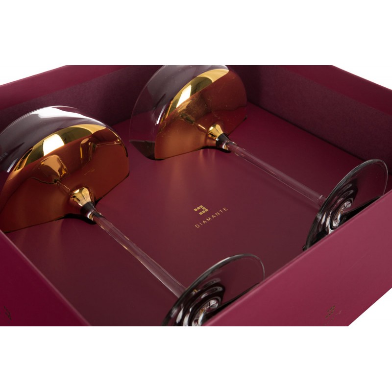 Dve krásne zabalené saucery na šampanské, ktoré sú ručne maľované s 20 karátovým zlatom.  Znova sa stáva veľkým trendom piť šampanské alebo sekt zo šampanských saucerov.