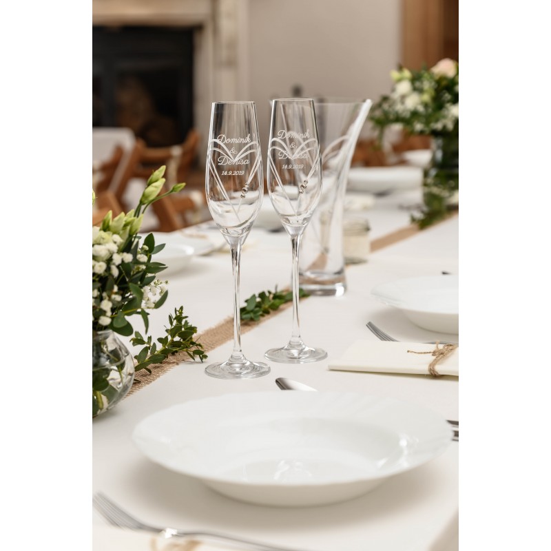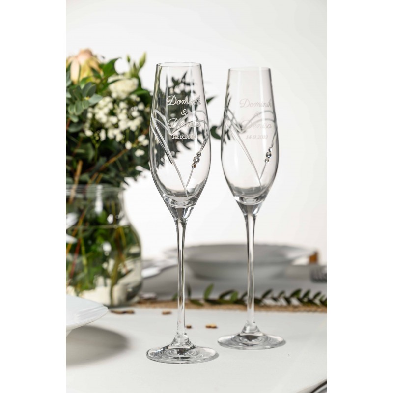 Zvoľte si tieto luxusné svadobné poháre s elegantným srdcom a pridajte k vášmu svadobnému dekoru štýlový a luxusný dotyk, ktorý sa budete radi pozerať aj o roky neskôr.