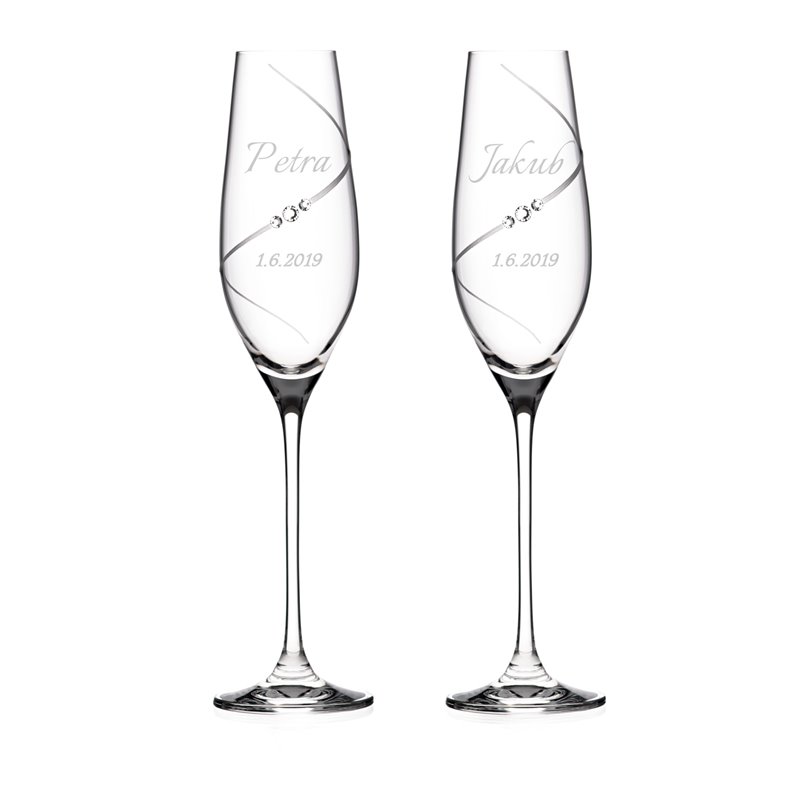 Luxusné no zároveň jednoduché poháre na šampanské. Elegantný vzor na pohároch skvele vynikne na Vašom svadobnom stole. Perfektne sa hodí ku každej výzdobe!