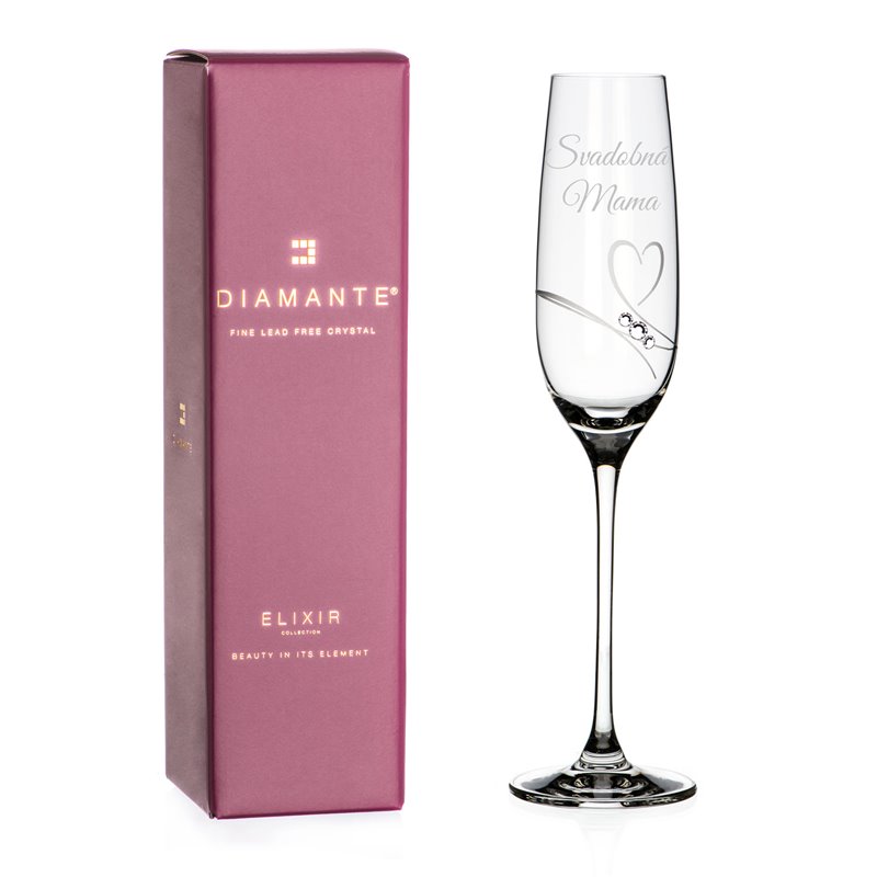 Pohár je gravírovaný s textom “Svadobná Mama” ako je vidieť na obrázku.