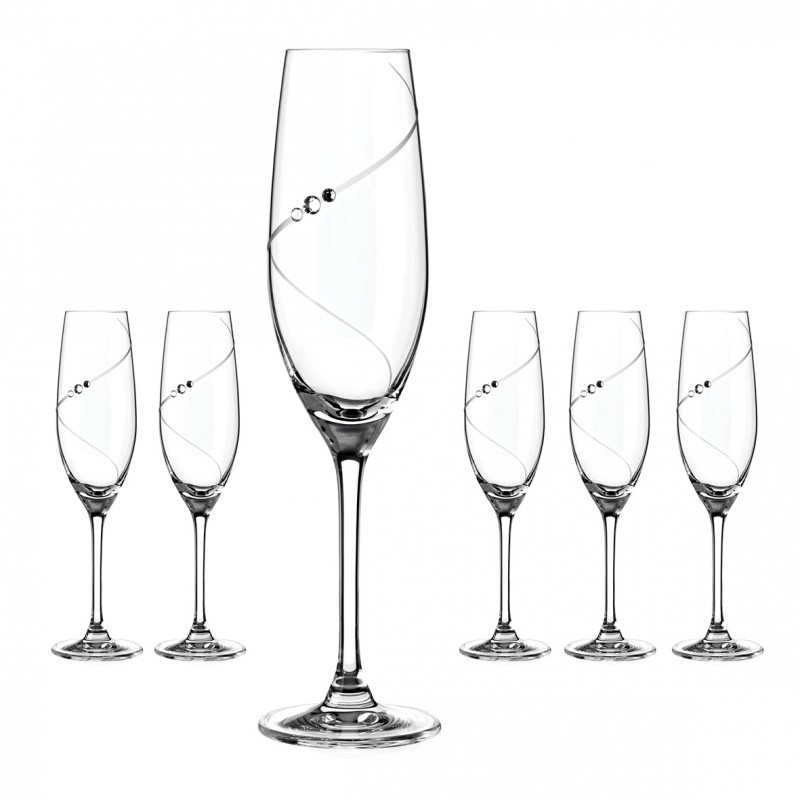 Šesť elegantných poháov na šampanské a prosecco