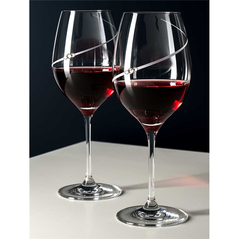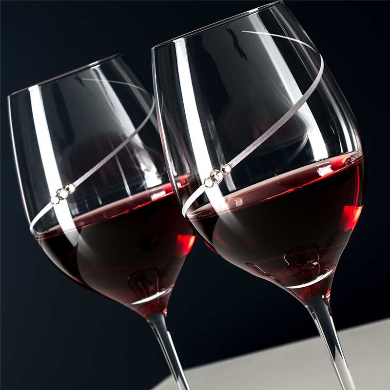 Luxusné no zároveň jednoduché poháre na červené víno zdobené krištálikmi Swarovski. Elegantný vzor na pohároch skvele vynikne na Vašom svadobnom stole, nech už máte výzdobu akokoľvek ladenú. Gravírovanie Vašich mien a dátumu svadby Vám navyše bude pripomínať túto výnimočnú udalosť zakaždým, keď ich budete používať.