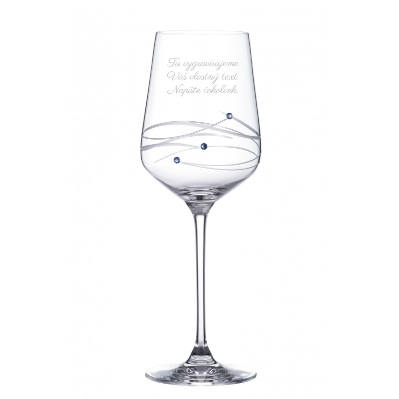 Pohár na víno gravírovaný Vašim textom a zabalený v darčekovej krabici. Každý pohár je ručne brúsený a zdobený pravými Crystals by Swarovski®