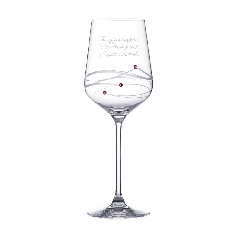 Pohár na víno gravírovaný Vašim textom a zabalený v darčekovej krabici. Každý pohár je ručne brúsený a zdobený pravými Crystals by Swarovski®