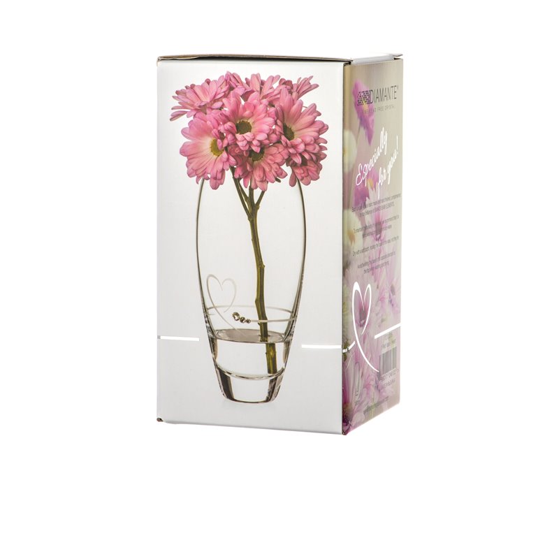 Menšia váza s výškou 18cm je ideálna pre napríklad menšie lúčne kvety. Elegantný a jemný vzor so Swarovski kamienkami podčiarkne krásu každej kytičky. Ideálna aj ako svadobná dekorácia, dokonale dotvorí Vašu svadobnú hostinu a neskôr Váš domov.